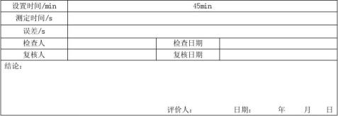 設(shè)置運行時間為45分鐘并運行,從轉(zhuǎn)桿開始轉(zhuǎn)動,“秒信號指示燈”開始閃亮,用秒表開始計時,當(dāng)轉(zhuǎn)桿停止運行,“秒信號指示燈”恒亮不閃,秒表計時停止,比較秒表與實際運行時間的時間差。