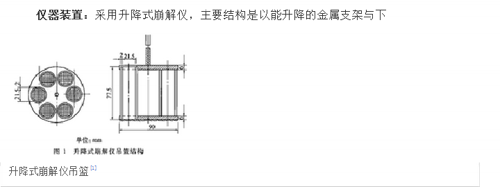 崩解儀進(jìn)行檢查,各片均應(yīng)在15分鐘內(nèi)全部崩解。如有一片不能完全崩解,另取6片復(fù)試,均應(yīng)符合規(guī)定。[1]