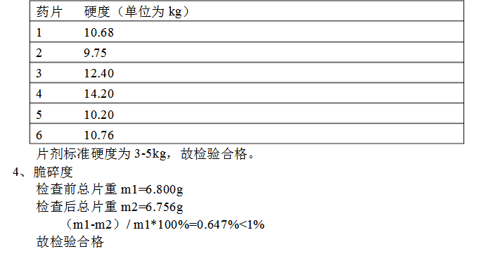 2、實(shí)驗(yàn)中阿司匹林6片均在3min之內(nèi)全部崩解,按藥典規(guī)定,壓制片應(yīng)在15min內(nèi)崩解完全,故檢驗(yàn)合格