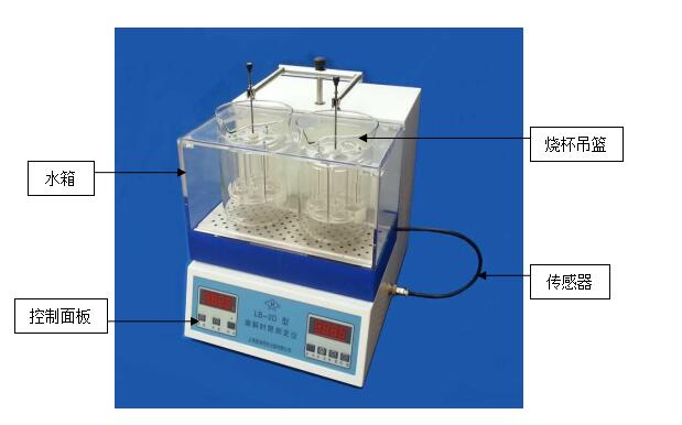 放入水箱中,水箱中可盛放略低于35℃的溫水,再調(diào)節(jié)水位高度和吊籃的吊桿高度,使吊籃上升時(shí)的篩網(wǎng)在水面下15mm處,下降時(shí)距燒杯底25mm。